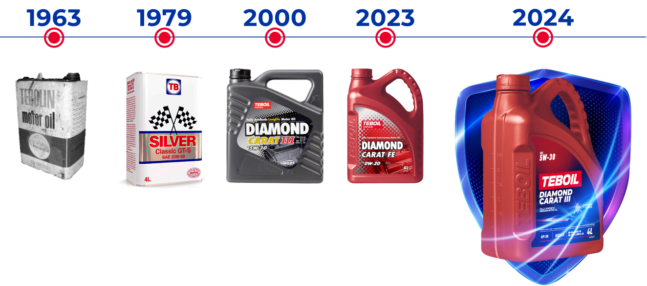 Уже более 60 лет Teboil занимается производством высококачественных смазочных материалов. За эти годы менялись рынок, требования к моторным маслам и потребности автовладельцев – как следствие Teboil модернизировал формулы и упаковки продуктов. Неизменным оставались премиальное качество, соответствие международным стандартам и инновационные разработки на каждом этапе истории.